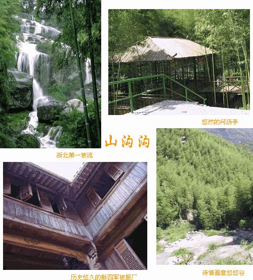 杭州山溝溝風(fēng)景名勝區(qū):地處杭州西北四十公里的“浙江省蜜梨之鄉(xiāng)” 余杭區(qū)鸕鳥(niǎo)鎮(zhèn),風(fēng)景區(qū)擁有杭城第一峰——海拔1095米的窯頭山和次高峰海拔1025米的紅桃山,是太湖的重要源頭之一。風(fēng)景區(qū)內(nèi)資源豐富,生態(tài)環(huán)境優(yōu)良,動(dòng)植物種類豐富,有國(guó)家珍稀植物千年紅豆杉群,有國(guó)家一級(jí)保護(hù)動(dòng)物黑麂等。四周峰巒疊嶂,群山蒼翠,植被覆蓋率95%,形成了與周邊環(huán)境不同的獨(dú)特的“康樂(lè)型”氣候環(huán)境。杭州山溝溝風(fēng)景名勝區(qū)是國(guó)家級(jí)的生物圈保護(hù)區(qū),國(guó)家森林公園,全國(guó)農(nóng)業(yè)旅游示范點(diǎn),浙江省農(nóng)家樂(lè)特色示范村。