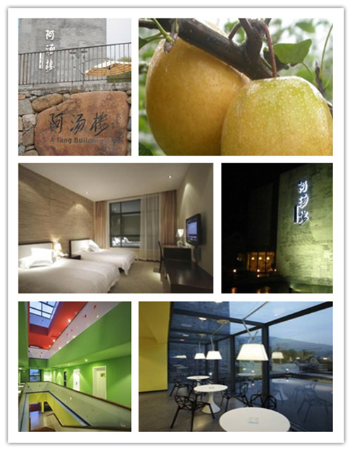 杭州阿湯樓酒店:位于杭州山溝溝景區(qū),周圍風(fēng)景秀麗,于2007年底籌備興建,2009年5月正式開(kāi)業(yè),擁有大小客房50多間,還設(shè)有會(huì)議室、KTV、棋牌室、頂層露天茶室等商務(wù)、休閑娛樂(lè)設(shè)施?;氐骄频晖瑯幽芟硎艿蕉际鞋F(xiàn)代化酒店服務(wù)和環(huán)境。酒店每一層公共走廊空間的墻面頂面都用一種純色貫穿,分別是黃、紅、綠、藍(lán),代表著四季的變化??头恳詨L風(fēng)格為主,幾乎每一間都不一樣,家具及燈具選則擇了現(xiàn)代主義及后現(xiàn)代主義風(fēng)格的經(jīng)典款式。